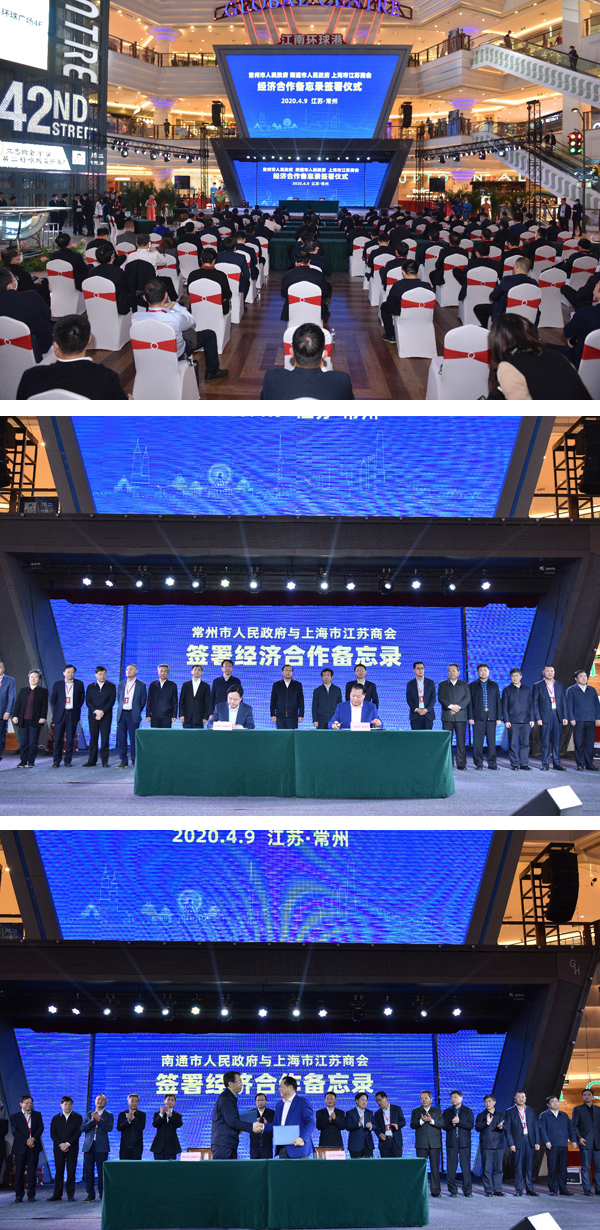 常州市人民政府、南通市人民政府、上海市江苏商会签署经济合作备忘录