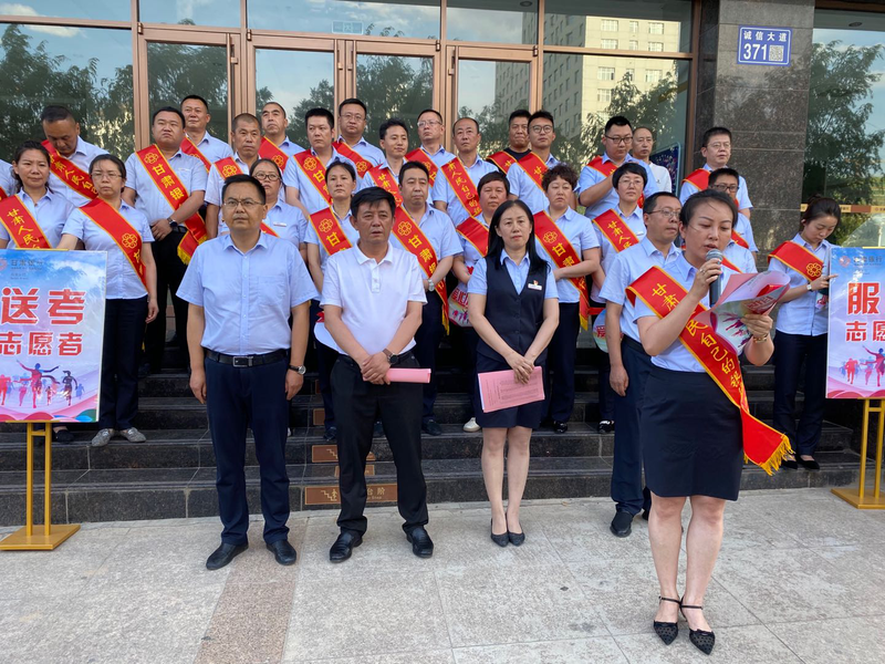 (甘肃银行白银分行爱心送考志愿者宣读倡议书)
