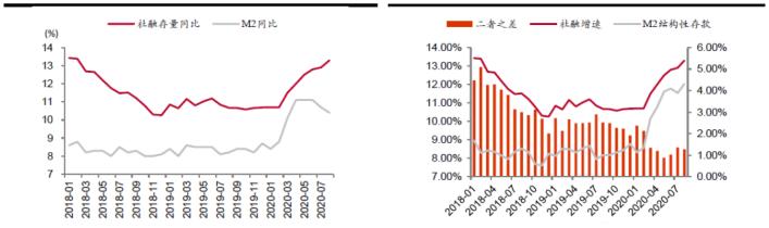 再来看结构性存款,它可以算作一般性存款计入银行表内负债,自然也算作M2,且由于利息水平较高,受到投资者青睐。