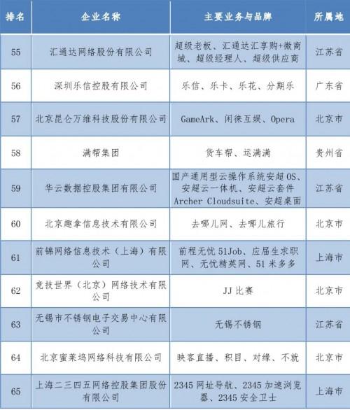 2020年10月29日,中国互联网协会在北京举办《中国互联网企业综合实力研究报告(2020)》发布会暨百家企业高峰论坛。会上发布了2020年中国互联网综合实力前百家企业名单,汇通达入选100强,位列第55名。