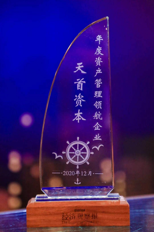 2020年12月14日,由《经济观察报》与经观传媒主办的“2020年度第六届金融年会”上,天首资本荣膺“年度资产管理领航企业”奖。此大奖为年度金融领域重磅奖项,天首资本成为本年度评选资产管理领域*获奖企业。