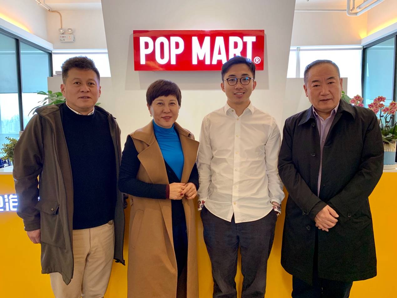 左起:金慧丰投资总经理周立峰,金慧丰投资董事长周丽霞,泡泡玛特创始人、CEO王宁,金慧丰投资创始合伙人王培
