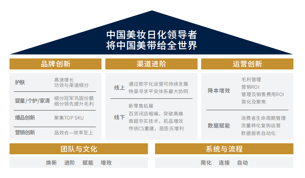 2020年6月股东大会,他将家化未来的经营方针总结为:一个中心,两个基本点,三个助推器。分别是以消费者为中心,以品牌创新和渠道进阶为基本点,以文化、流程和数据化为助推器,通过“简化”和“聚焦”提升运营效率,降本增效。
