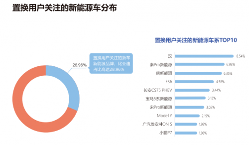 报告表明,国产品牌在新能源置换市场具有一定优势,传统燃油车主对新能源车的接受程度较高;置换用户关注的新能源车价格主要分布在20万元以下,比亚迪为最受置换用户关注的新能源品牌。