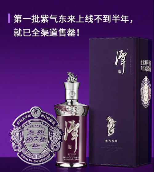 为了让消费者能够直观地感受到紫气东来的品质,潭酒还创新使用“龙标”,将产品的勾调用酒比例、年份信息、价格信息等标注于瓶身。