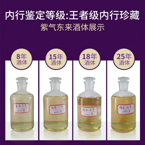 作为潭酒“6+1真年份家族”产品中的*产品,紫气东来酒体由“8年基酒+15年老酒+18年老酒+25年老酒+30年老酒”组成。