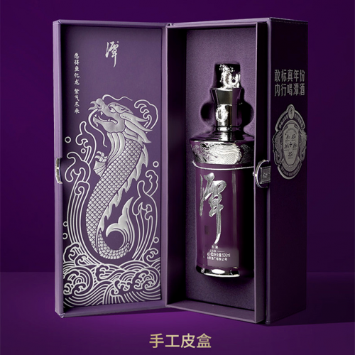 瓶身以古今帝王专用的紫色做主色调,用真铂金纯手工立体雕刻而成的1964片龙鳞缠绕瓶身,凸显尊贵。