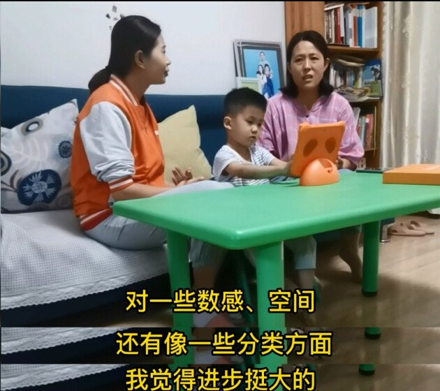 翔翔妈妈表示,以前孩子只知道数字,并不知道数字代表的真正含义,再通过早教电脑里面“数学认知”的课程,使他知道了“2”是代表着两个东西,能把抽象的符号和具体的实物对应起来了。还表示翔翔的语言理解能力也明显提升,孩子日常会使用更多的形容词,还能说出四字的词语,连幼儿园老师都夸他:不像这个年龄段的孩子会说出来的话!