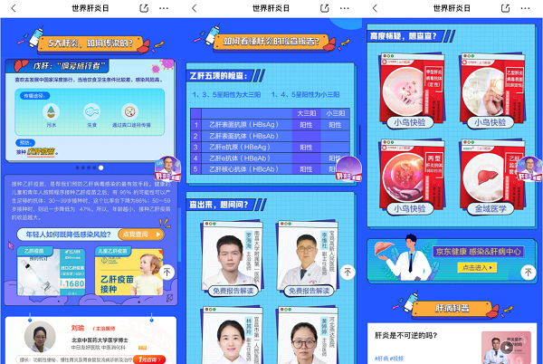 “甲、乙、丙、丁、戊五大肝炎的典型症状有哪些?”“又主要通过哪些渠道进行传染?”“治疗肝炎的常用药物有哪些?”……针对大众对肝炎普遍存在的各种“认知误区”,京东健康肝炎日专区中都进行了详尽解答。