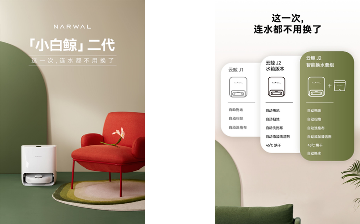 值得一提的是,在直播现场还进行了一系列新品功能演示,直观地感受到云鲸J2的技术突破。在满足“自动清洗拖布”核心痛点的基础上,云鲸J2新增“自动上下水”、“自动添加清洁剂”等突破性功能,解决用户曾经在使用扫地机器人需要亲自换水的问题,并把J2自动上下水功能做成了一个一体化的选配模块,可实现随时加购升级。真正做到解放双手。这是智能家居行业又一跨越性产品,自身硬核实力已然“吸睛”。