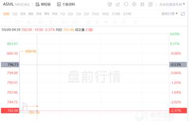 财报发布之后,阿斯麦在欧洲市场的股价低开高走。但截至发稿前,阿斯麦在美股盘前走势中仍下跌超2%。