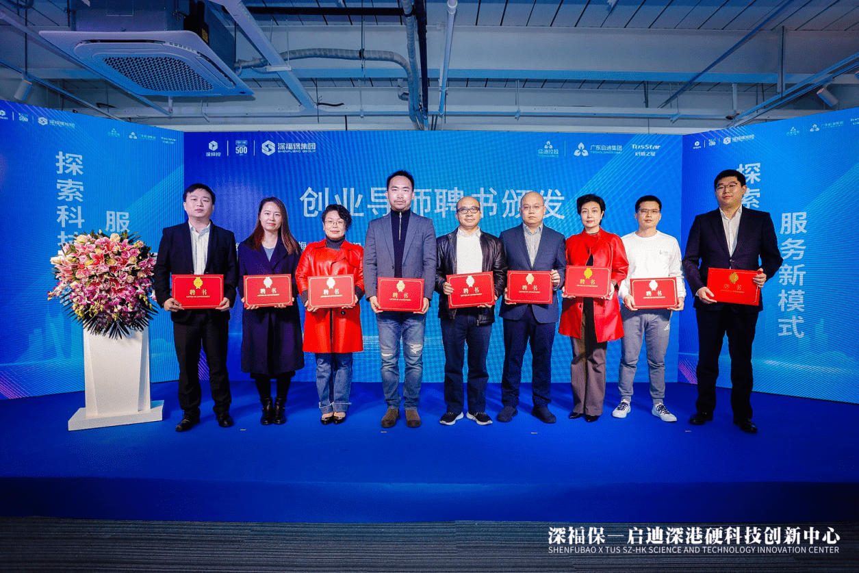 启迪之星(深圳)执行总经理兰波、深福保启迪深港硬科技创新中心副总经理史哲冬为清华深圳国际研究生院培训学院院长朱继强,五邻产业运营管理(深圳)有限公司董事长付德梅,国宏嘉信基金合伙人梁祝,追梦者基金合伙人孙鹏,保腾资本投资总监胡宇哲,深圳市供应链金融协会副秘书长、深圳市先行供应链金融研究院执行院长高婉宁,金杜律所合伙人马雷鸣,新浪科技记者、资深媒体人李昌怀颁发“深福保启迪深港硬科技创新中心创业导师”聘书。