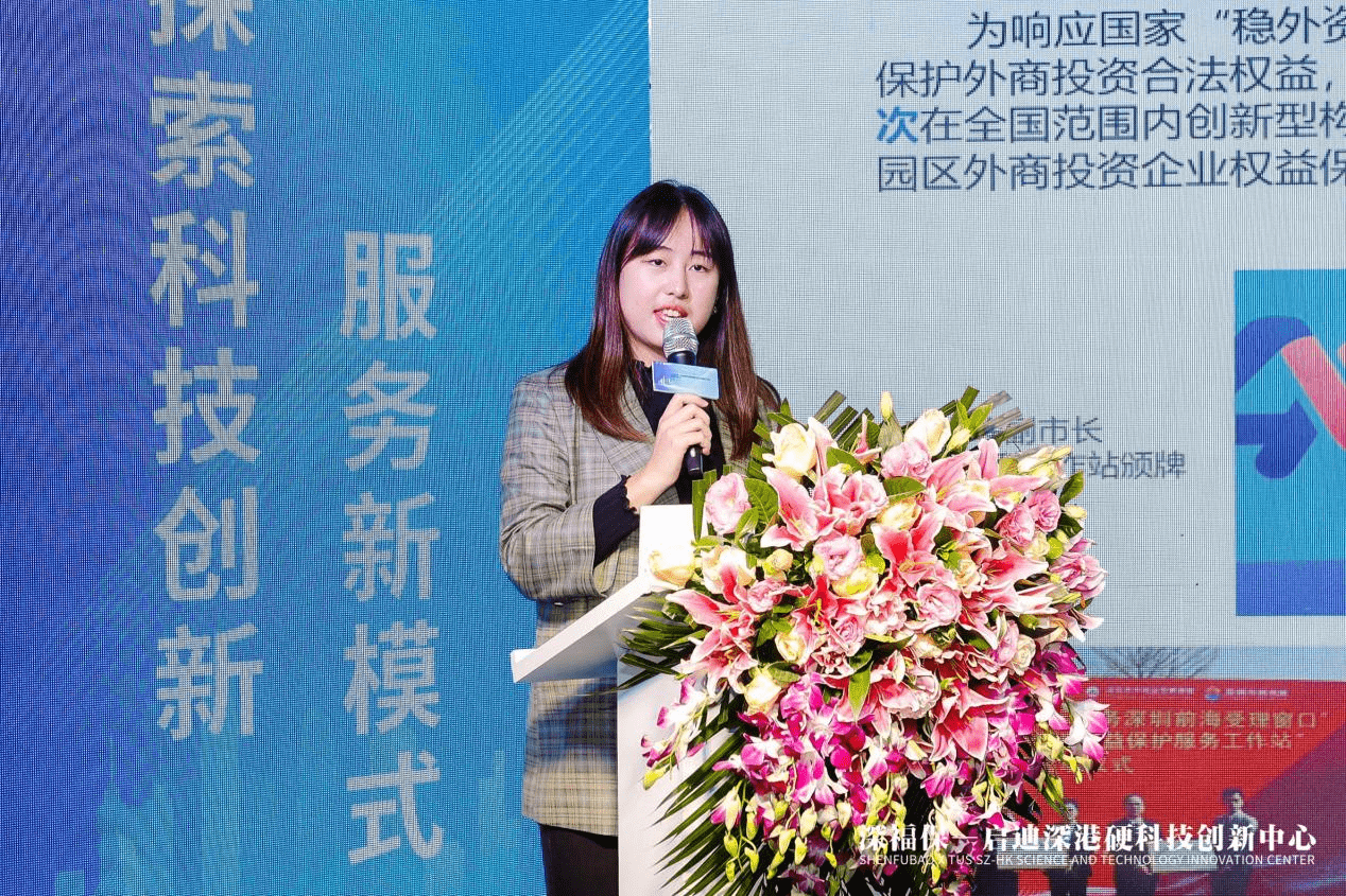 此外,深圳市外商投资权益保护服务工作站代表陶子薇就深圳市外商投资权益及深港科创合作区外资政策进行了宣讲,宜昌高新区党工委委员、组织部部长刘金峰结合创新工作站进行了专题分享。