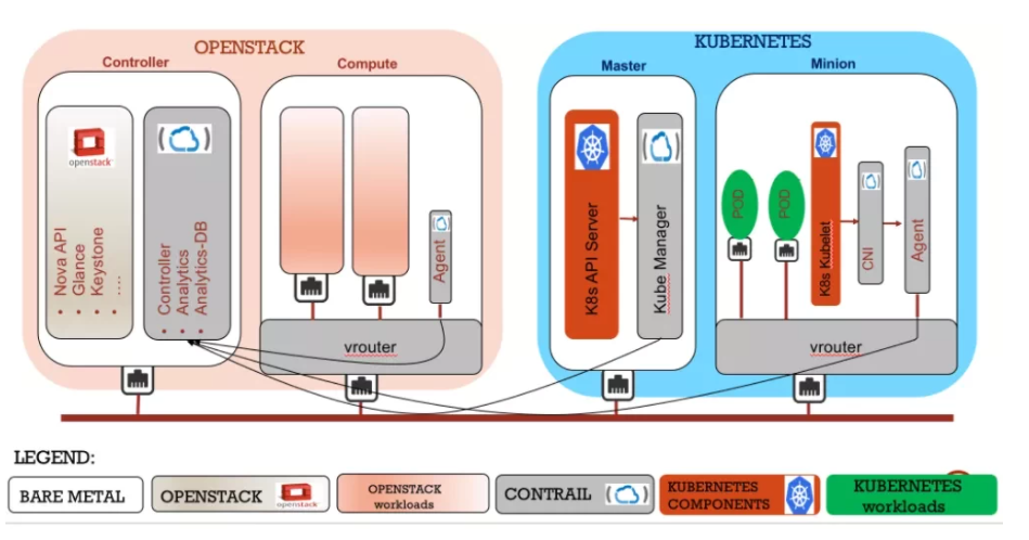 由于在裸机上会直接部署Vrouter,所以CNI可以直接访问当前节点的Vrouter。相对于嵌套模式不需要进行流量转发。