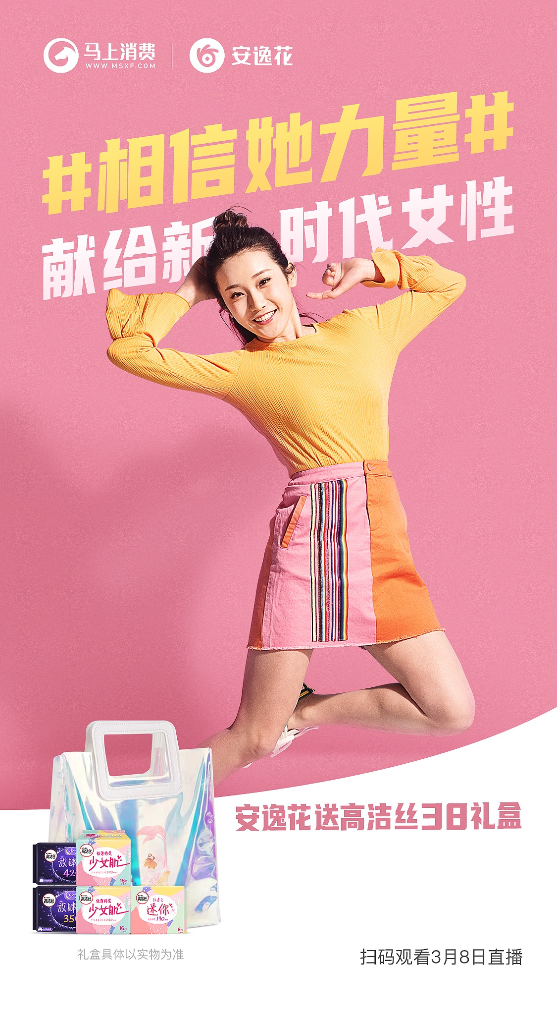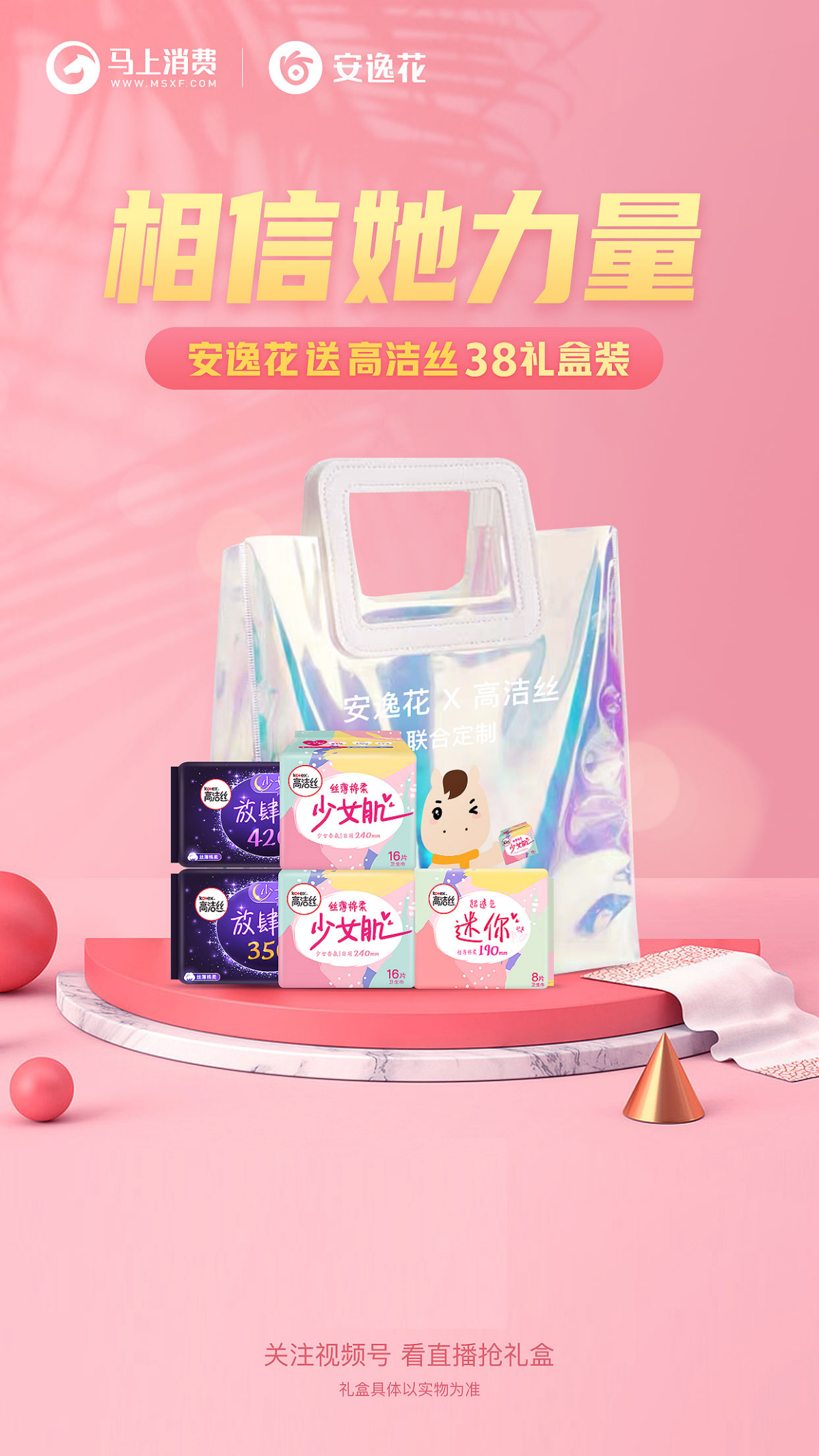 马上消费旗下的安逸花自上线6年以来,始终坚守以用户为中心,并贴心陪伴每一位平凡的奋斗者,帮助这些心怀梦想的人勇敢追梦,从而实现人生价值。最近的38妇女节,安逸花特别推出了“相信她力量”38高洁丝定制礼盒,献给新时代女性。