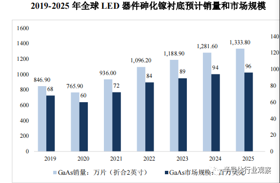 图五、LED器件砷化镓衬底销量与市场规模预测
