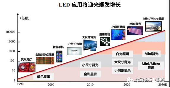 随着LED照明普及率的不断提高,常规LED芯片及器件的价格不断走低。常规LED芯片尺寸为毫米级别,对砷化镓衬底的技术要求相对较低,属于砷化镓衬底的低端需求市场,产品附加值较低,该等市场主要被境内砷化镓衬底企业占据,市场竞争激烈;而新一代显示所使用的Mini LED 和 Micro LED芯片尺寸为亚毫米和微米级别,对砷化镓衬底的技术要求很高,市场主要被全球*梯队厂商所占据。据YOLE数据分析,LED器件销售与市场规模预测如下: