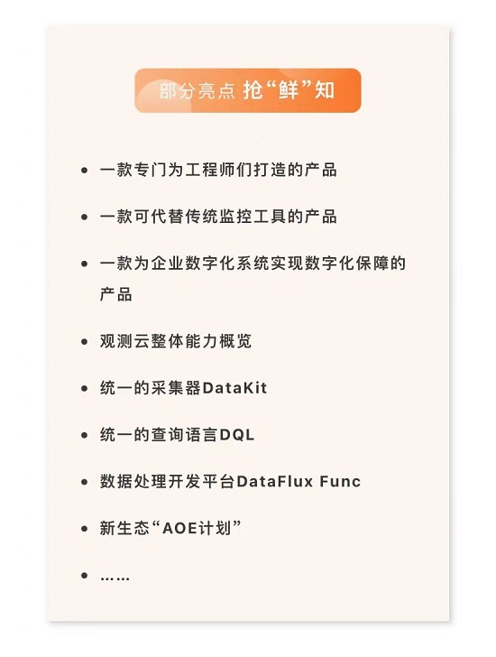 4月28日20点整,观测云产品将首次亮相。为了让广大IT工程师们全方位了解可观测性,本场发布会将以线上形式进行,并将在InfoQ、活动行、稀土掘金、CSDN、SegmentFault 、云技术、阅码场、DataFun等平台实时直播互动。(特别鸣谢云原生计算基金会、开源GitOps产业联盟的支持!)