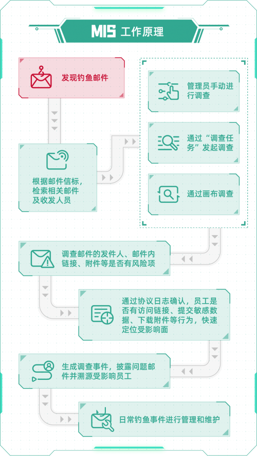 面对钓鱼邮件攻击事件频发、实战攻防演练中难以防范、企业防御手段单一的安全困境,尤其在邮件网关被绕过等情景下,如何帮助企业“大海捞针”快速追踪研判钓鱼邮件、止损邮件钓鱼“后渗透行为”对企业的影响,是斗象全新MIS产品的核心价值所在。
