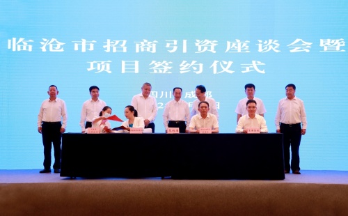 6月9日,云南省临沧市党政代表团于成都举行招商引资座谈会暨重大项目签约仪式。正黄集团与临沧市工业园区管委会共同签署了临沧高铁站站前片区综合开发项目战略合作协议。会议由中共临沧市委常委、市政府常务副市长赵子杰主持,市委书记张之政,市委常委、临翔区委书记、临沧工业园区党工委书记蒋世良,市委常委、市政府副市长石庆贺等临沧市主要领导出席。正黄集团董事长黄良、执行总裁项波先生参与本次签约仪式。