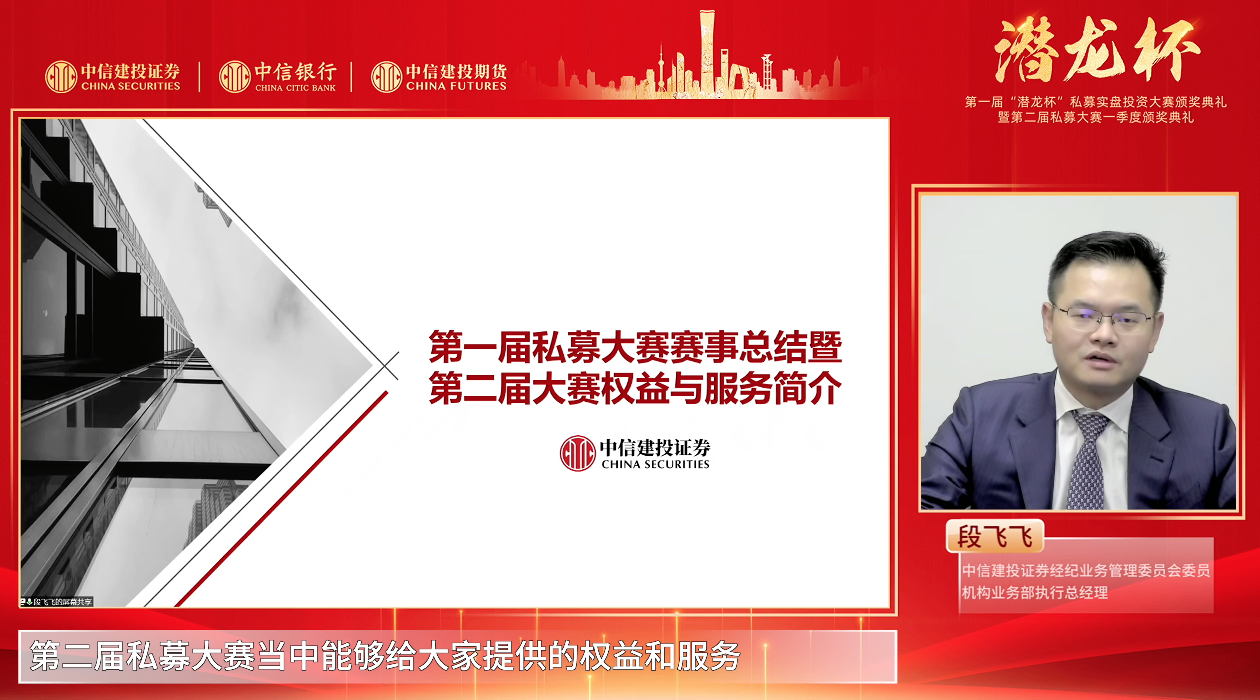 “我国财富管理的市场才刚刚开始,大量的老百姓的财富都是需要优秀的管理人来管理,我们既要帮助投资人选择优秀管理人,也要发挥券商角色,通过优质的金融服务培育更多好的管理人。”段飞飞认为,通过比赛,未来中信建投证券可以帮助更多有才华的私募管理人得到市场的关注、投资人的支持,通过“超常规”资源投放,用优质的资源、专业的服务赋能更多优秀的私募基金做大做强。