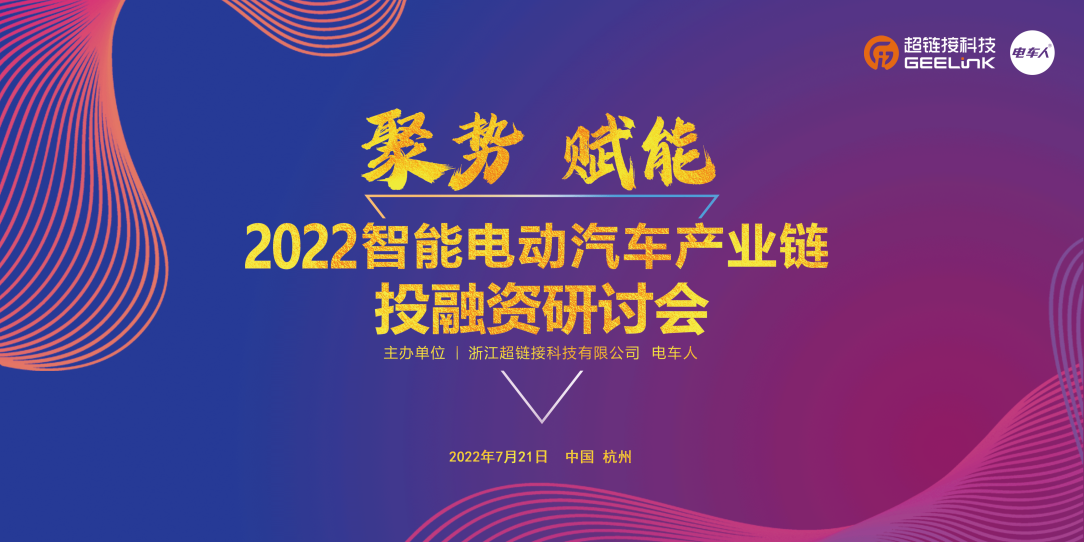 2022年7月21日,由浙江超链接科技发展有限公司、电车人共同主办的2022智能汽车产业链投融资研讨会在杭州顺利举办,来自行业协会、对标企业、各大金融机构的40余位嘉宾齐聚一堂。本次会议邀请电车人产业平台创始人马前程、国家新能源汽车重点科技专项总体组电机责任专家贡俊、众擎基金投资总监钱颖奇、轩元资本总经理王荣进、超链接科技副总经理刘超等共同出席。