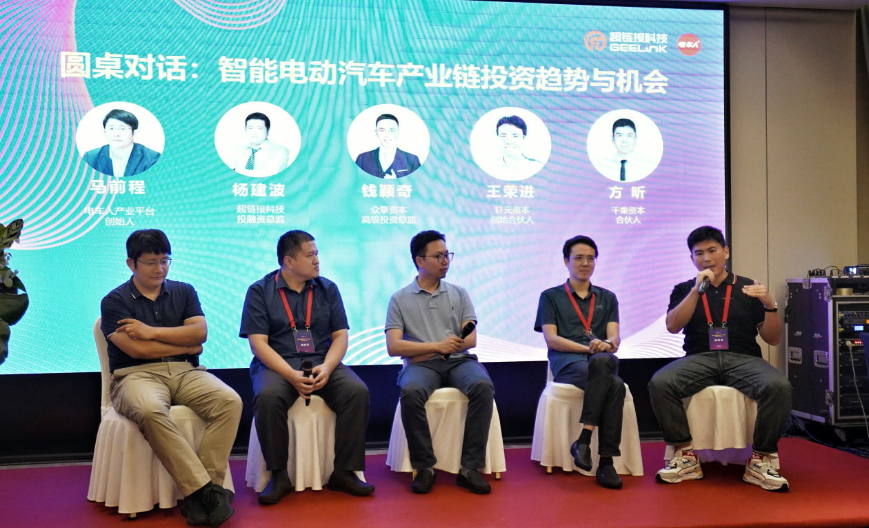 下半场圆桌会议更是将整场活动氛围推至高潮,电车人产业平台创始人马前程、超链接科技投融资总监杨建波、众擎基金高级投资总监钱颖奇、轩元资本创始合伙人王荣进、千乘资本合伙人方昕五位嘉宾对2022年智能电动汽车产业投资新趋势和未来在汽车产业链环节和投资方向进行了深入分享和探讨。