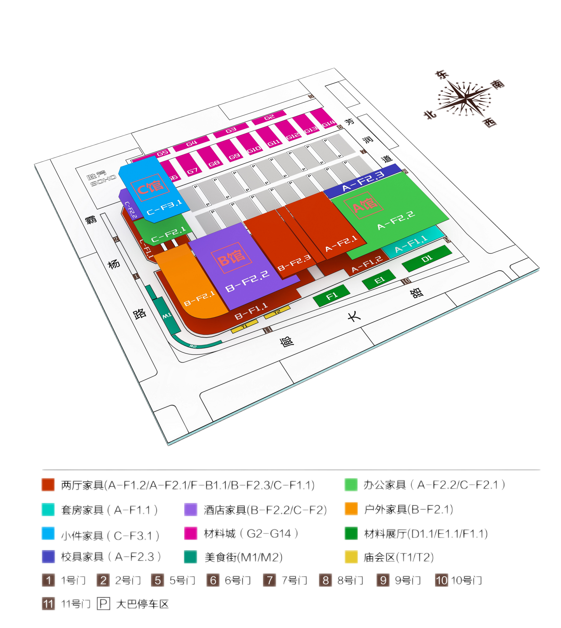 B馆经典展区:位于A馆和C馆中间,两厅/酒店/户外家具,是采购商逛展的必经之地。