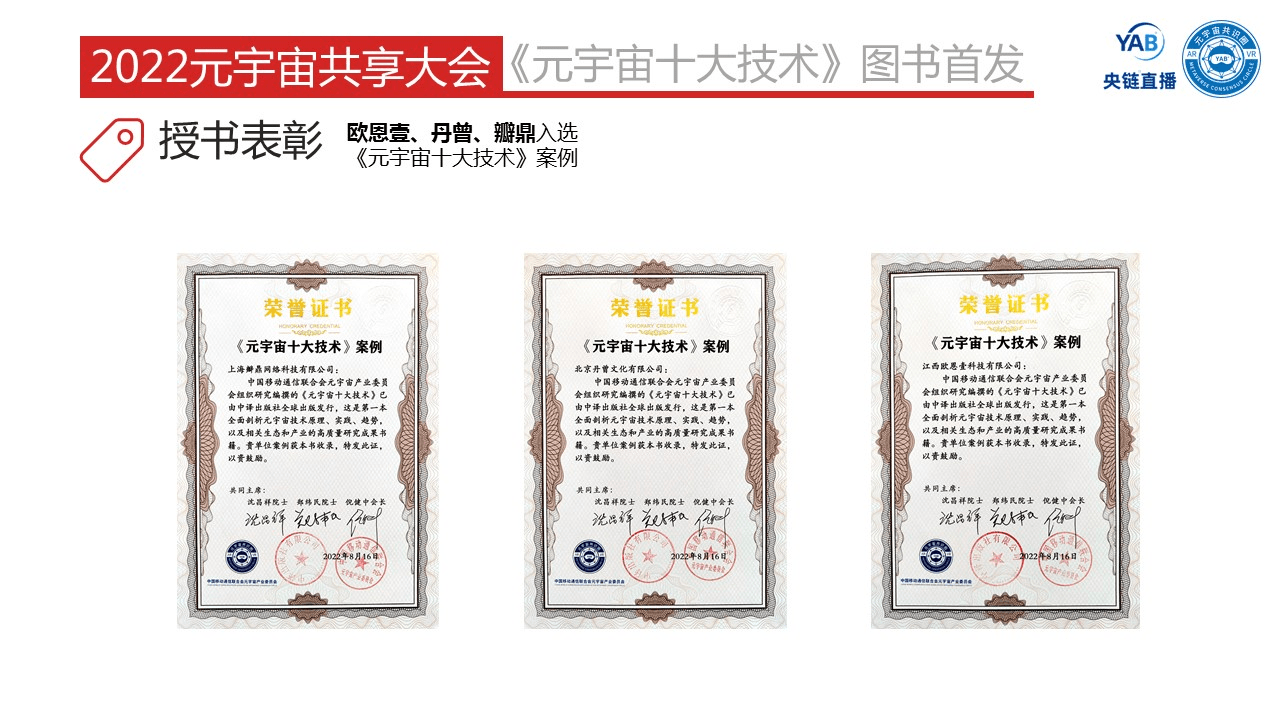欧恩壹、丹曾、瓣鼎入选《元宇宙十大技术》案例。