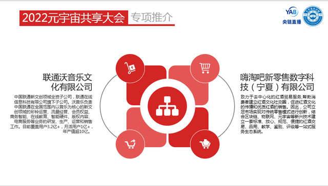 嗨淘吧新零售数字科技(宁夏)有限公司代表上台,就公司业务和发展方向做了详细的介绍,并就为本次元宇宙共享大会提供熙夏礼红酒赞助支持,及与会嘉宾在就餐时品尝的熙夏礼红酒给与了高度评价,表示欣慰和荣幸。