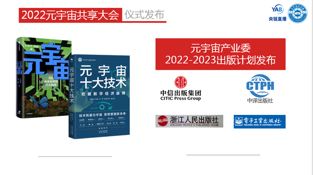 ——元宇宙产业委2022-2023出版计划发布:签约中信出版集团、中译出版社、浙江人民出版社、中国工信出版集团电子工业出版社等。