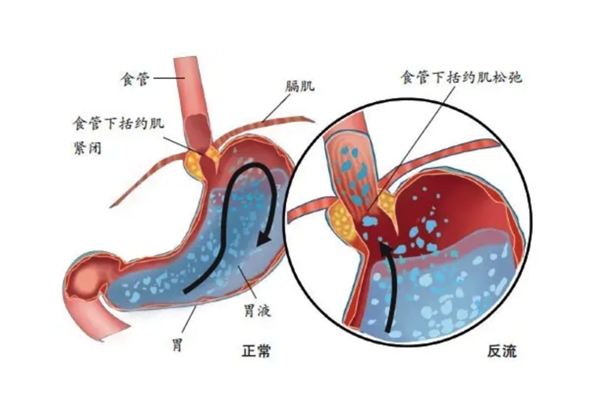 胃食管反流的患者的胃酸会向上回流到食管,由于胃酸的腐蚀性很强,反酸时胃酸会逆流向上接触并腐蚀食管黏膜,导致食管黏膜损伤、溃疡,造成反流性食管炎。