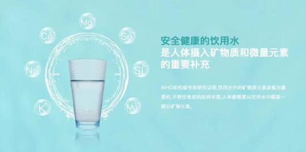 早在2016年,中国营养学会加入了“水健康”概念。《健康直饮水水质标准》(T/BJWA 001-2021)要求水中保留适量的矿物元素。世界卫生组织(WHO)强调,水中的矿物质可以部分补充人群膳食矿物元素的摄入,尤其是钙和镁,在心血管疾病方面对人体健康具有一定的保护作用。