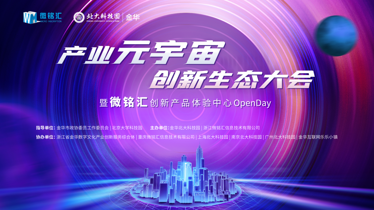 随着新技术、新成果、新应用不断涌现,大数据、云计算、人工智能、区块链等数字技术为产业发展注入新动力。2022 年 9 月 24 日,由金华市政协工作委员会、北京大学科技园指导,金华北大科技园、浙江微铭汇信息技术有限公司联合主办,浙江省金华数字文化产业创新服务综合体、重庆微铭汇信息技术有限公司、上海北大科技园、南京北大科技园、广州北大科技园、金华互联网乐乐小镇协办的产业元宇宙创新生态大会暨微铭汇创新产品体验中心 OpenDay 隆重启幕。