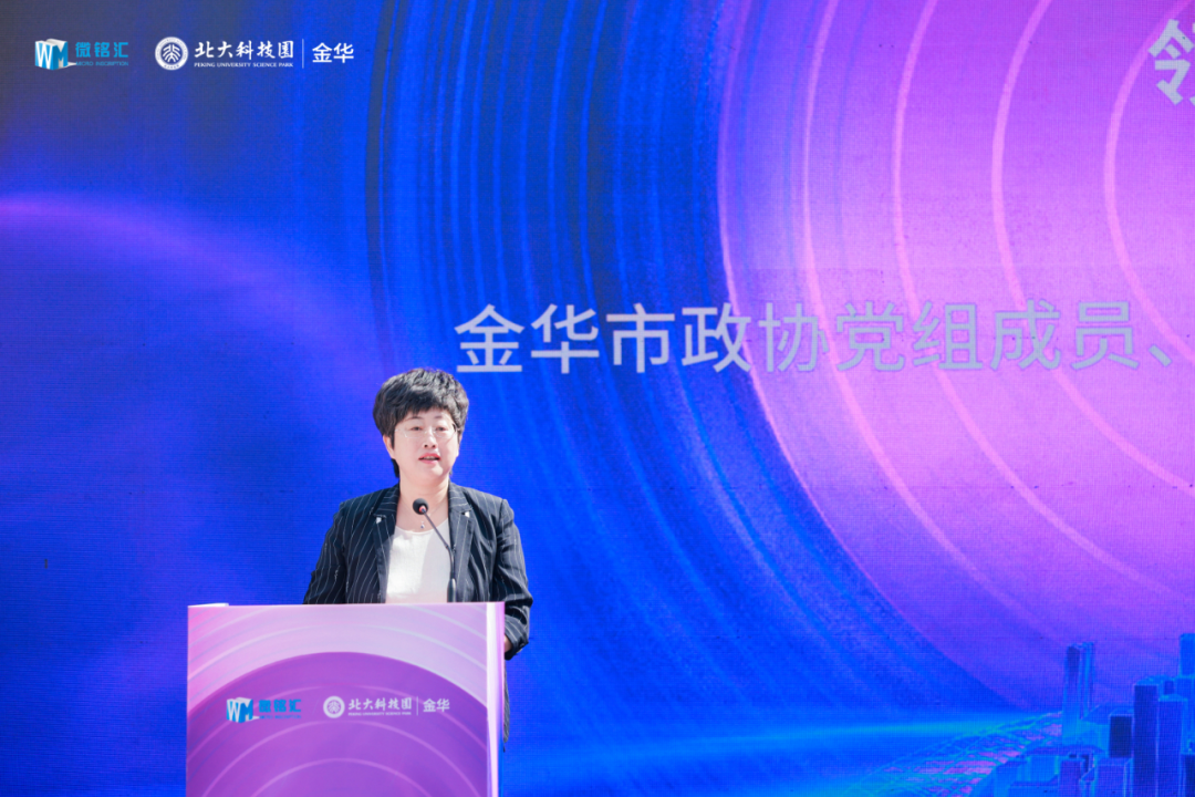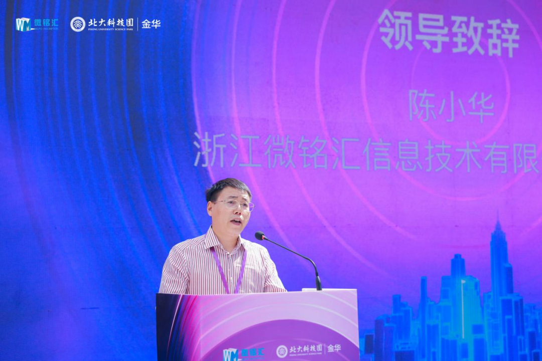 金华市政协党组成员、副主席、金华市社建委副主任蔡艳,金华市政协委员工委主任楼红华,浙江北大科技园有限公司总经理郑杰,北大科技园投资孵化中心总经理韩磊,微铭汇 CEO 陈小华等领导及合作伙伴、媒体等各界嘉宾出席仪式并共同见证。