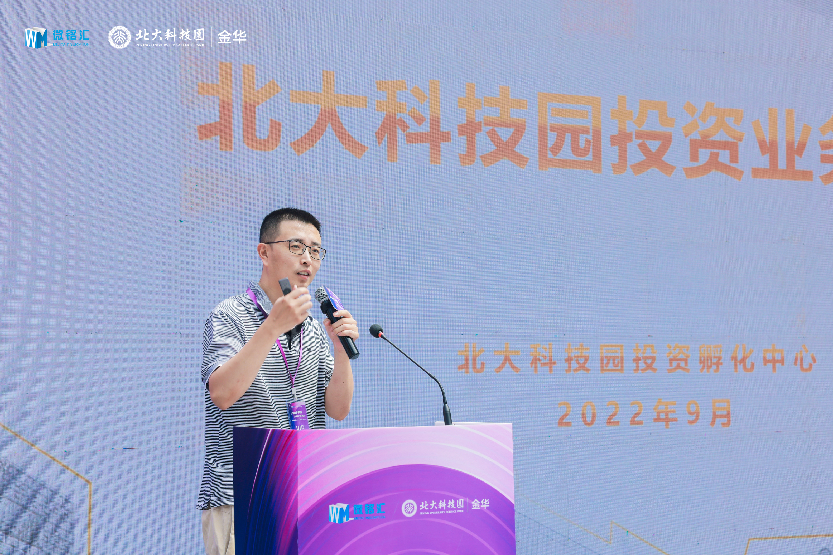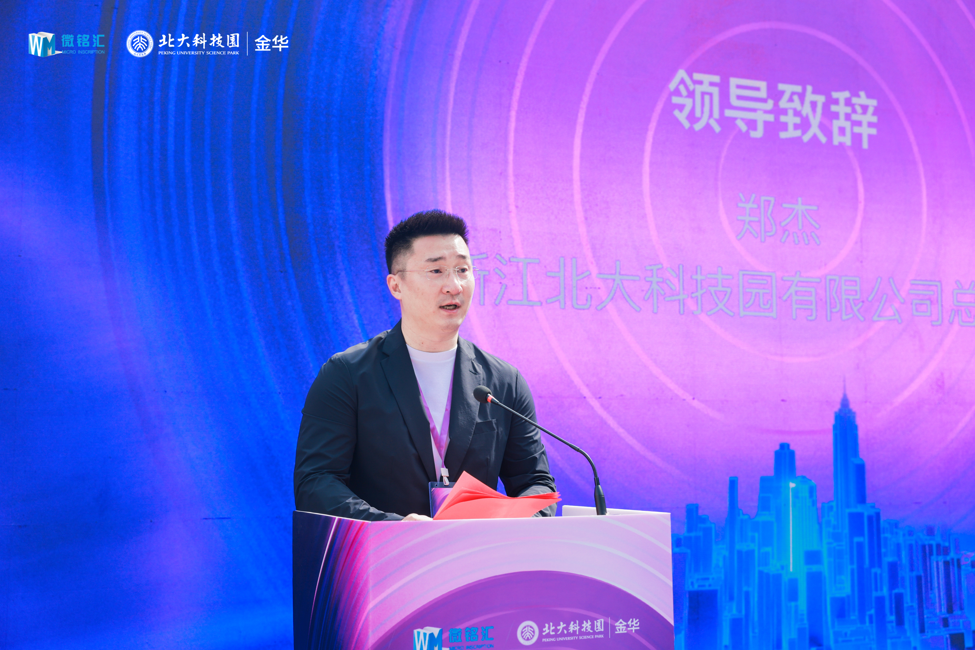 浙江北大科技园有限公司总经理郑杰在发言中特别指出作为产学研创新孵化基地,金华北大科技园要勇挑重担,敢打头阵,积极服务地方区域产业创新发展,打造原创技术策源地,聚合科技自立自强战略牵引势能。