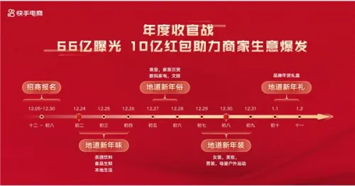 本次年货节期间,快手电商还推出了地道年货品类日活动,包括地道新年味、地道新年俗、地道新年装、地道新年礼四大主题,主播通过冲大场、发宠粉红包有机会瓜分亿级曝光流量奖励,优质商家将获得官方会场推荐展示。