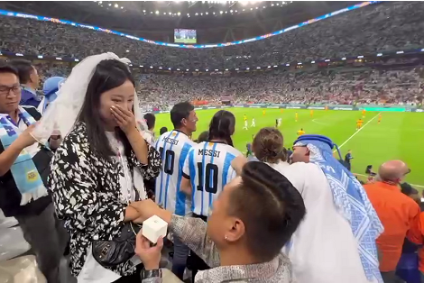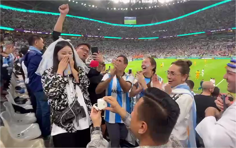 据悉12月10日,阿根廷对荷兰的比赛现场,一位中国女球迷表示“我居然在梅西罚进点球的时候被求婚了”。
