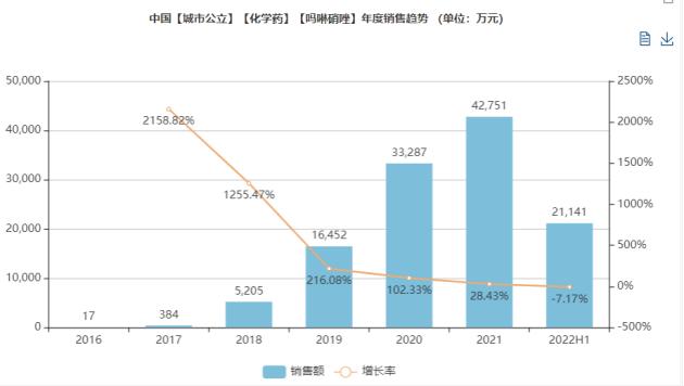 比如,2022年9月公司的吗啉硝唑氯化钠注射液以仿制4类报产,有望拿下该产品首仿。吗啉硝唑属于第三代硝基咪唑类抗菌药物,对厌氧菌有较强的抗菌作用,得到临床广泛应用。米内网数据显示,2021年中国公立医院吗啉硝唑氯化钠注射液销售额近5亿元。
