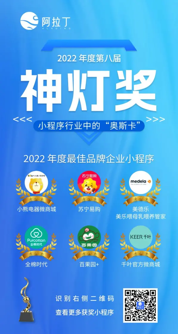 “神灯奖”是由阿拉丁指数和阿拉丁统计平台主办的小程序评选活动,被誉为“小程序行业中的奥斯卡”,评选维度从企业小程序的整体设计、便捷度、用户体验等多重维度出发,并综合考量其在行业内的整体水平与状况最终选出获奖作品。目前,神灯奖已成为互联网时代规模盛大、行业内外认可程度高、公信力强的小程序评选活动之一。