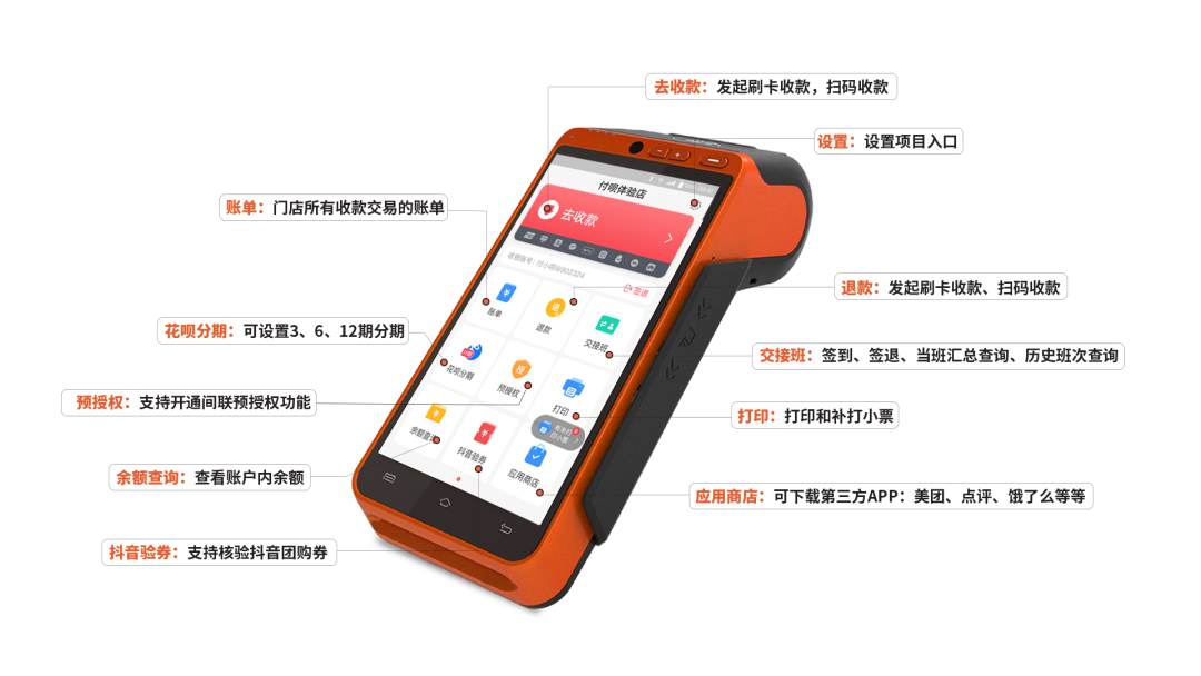 付呗智能POS是一款适用于医美、教育培训、休娱、餐饮等行业商家的智能收款产品,更是集商业管理、营销管理、全渠道支付方式为一体的商家好帮手。