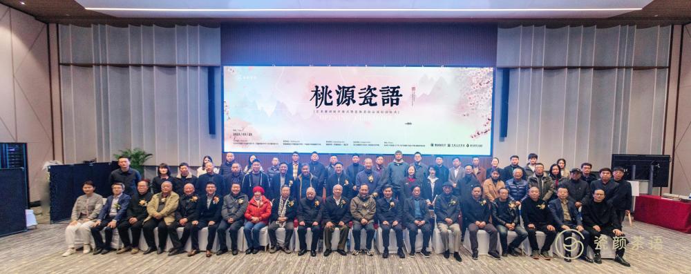 现场,杨建新先生、沈岳先生、吕伟刚先生以及“钱塘瓷画五杰”(张圣暄、傅义坤、杨斌、杨琪、杨德)8位老师共同点墨丹青,执笔留芳,桃花花开花谢,但今天我们用艺术留下她,让美好不随时间的变迁而改变。随后程渭山主任宣布桃源瓷语艺术邀请展开幕!