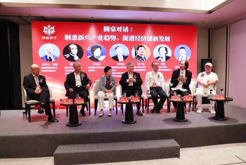 国福商学战略委员会主席、欧美同学会副会长姚望主持了以“洞悉新兴产业趋势,促进经济创新发展”为主题的圆桌对话环节,与国福商学中国企业新领 袖培养计划主席、中国企业评价协会会长、国务院发展研究中心原副主任侯云春,科技部重大专项办公室原巡视员刘玉兰,国福一期二班学员、碧生源控股有限公司董事长赵一弘,国福六期二班学员、北京约瑟投资有限公司董事长陈九霖,国福七期二班学员、慈铭健康体检集团董事长胡波,国福七期三班学员、香港地产中心(集团)有限公司执行董事长王坦,从政府、企业、技术三个维度展开交流探讨,对话产生了精彩的思想碰撞,同时也为在场嘉宾带来了诸多启示与建议。