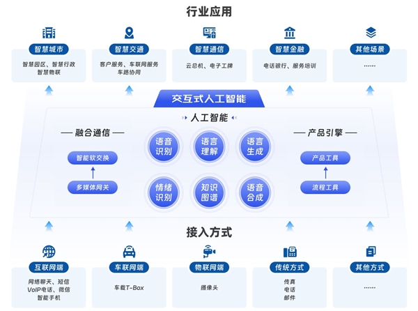 声通所服务的场景为交互场景,以人与人之间互通为例,想要达到有效的交互,通常需要这三项行为:“沟通”、“理解”、“执行”,对应的技术分别是融合通信、人工智能和产品引擎:“沟通”对应的技术融合通信,包括多种媒体的接入和分配;“思考”对应的技术人工智能模块,其中主要包含了语音识别、情绪识别、以及知识图谱等核心技术;”执行“对应的技术是产品引擎,实现最终的产品化落地。近二十年的持续研发,公司拥有上述的三项技术的自主研发能力,并基于此拓展了全面的标准化产品套件,从产品的全面性、便捷性、经济性、可复制等方面均能满足客户需求,并以此作为公司核心竞争力。目前公司的产品不仅能够满足人与人之间的交互,也能够满足人与物、物与物之间的交互。