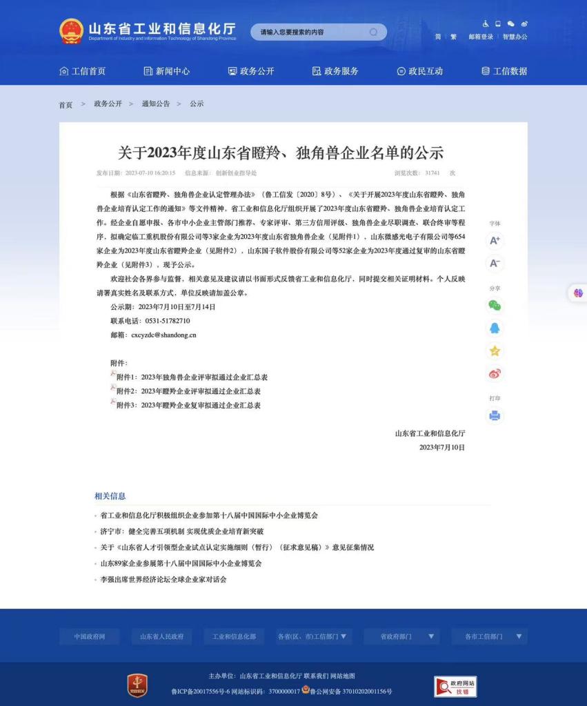 近期,深度数科集团成功入选山东省工业和信息化厅公示2023年度山东省瞪羚、独角兽企业名单。