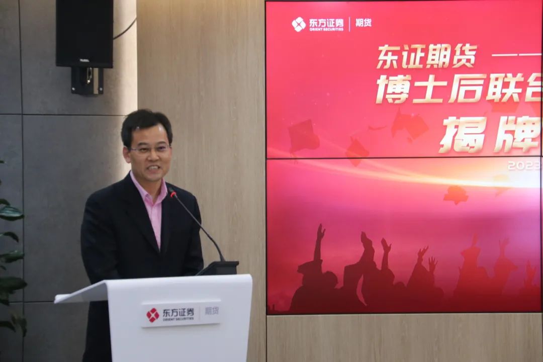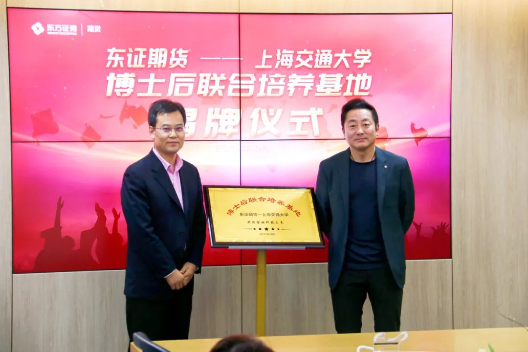 10月27日下午,东证期货与上海交通大学博士后联合培养基地揭牌仪式顺利举行。东方证券首席信息官、东证期货董事长卢大印,上海交通大学教师发展中心主任、安泰经济与管理学院教授张新安,东证期货副总经理兼技术总监高超,东证创新技术研究院院长王溢策,东证衍生品研究院院长助理张垚、东证衍生品研究院院长助理曹洋,以及联合培养的博士后何潇出席本次活动。