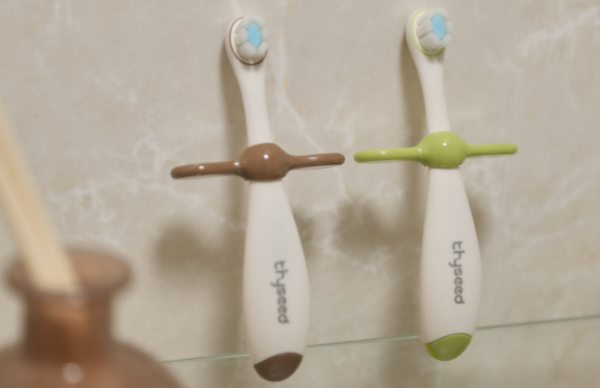 这款牙刷蕴含着多重设计,都是结合初学宝宝实际使用场景贴心添加的。首先就是考虑到宝宝牙刷使用的安全性以及方便收纳原则,世喜训练牙刷贴心的设计了一个像小翅膀的挡板,安装好挡板后,可以防止宝宝刷牙时过深可能戳到嗓子,还可以让牙刷能够挂杯收纳。另外,世喜训练牙刷上的挡板可以在宝宝使用熟练后拆卸下来,做普通牙刷来用。