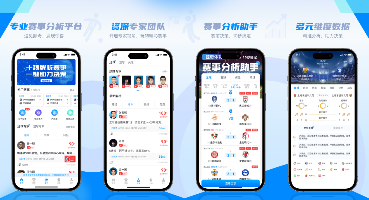 相信在日后的更新过程之中,鲸奇体育旗下的赛事分析助手能够发挥出自身的创新功能,为更多体育迷提供便利!