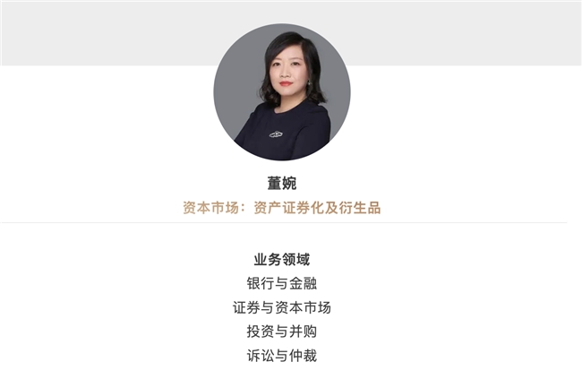 董婉律师是中银律所资产证券化部的部门负责人。她在资产证券化事宜拥有丰富经验,经常受到来自金融服务、房地产和基础设施领域的大型公司的委托。