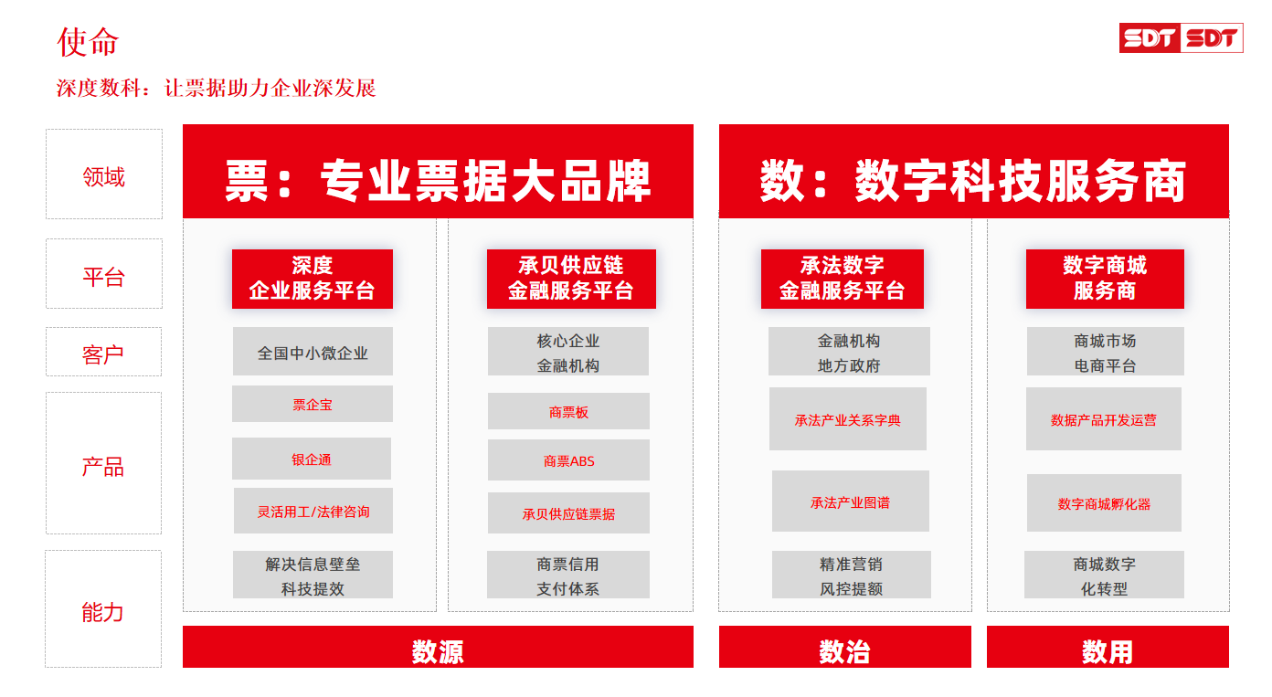 以业务支持政策助力中小微企业发展。深度数科集团自2016年创立以来,始终致力于推动票据服务行业的革新与发展,从头部票据服务平台向数字科技服务商的转型,是集团对票据场景数字化应用的深度实践。作为行业内的领军品牌,深度数科集团的票据服务,聚焦于解决中小微企业融资难、信息不对称等痛点,通过创新实践,已为全国超过21万家中小微企业提供了高效、精准的票据服务,服务网络遍布全国,尤其在经济发达、企业融资需求旺盛的浙江、江苏、广东、山东等地,深度数科集团的服务触角延伸至最前沿。